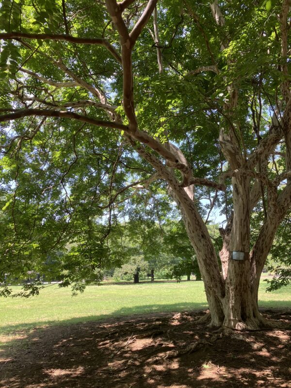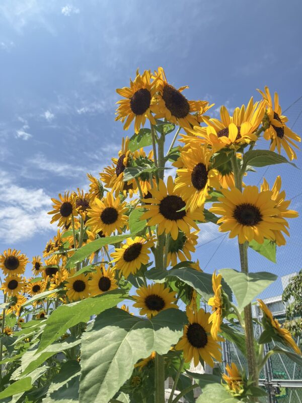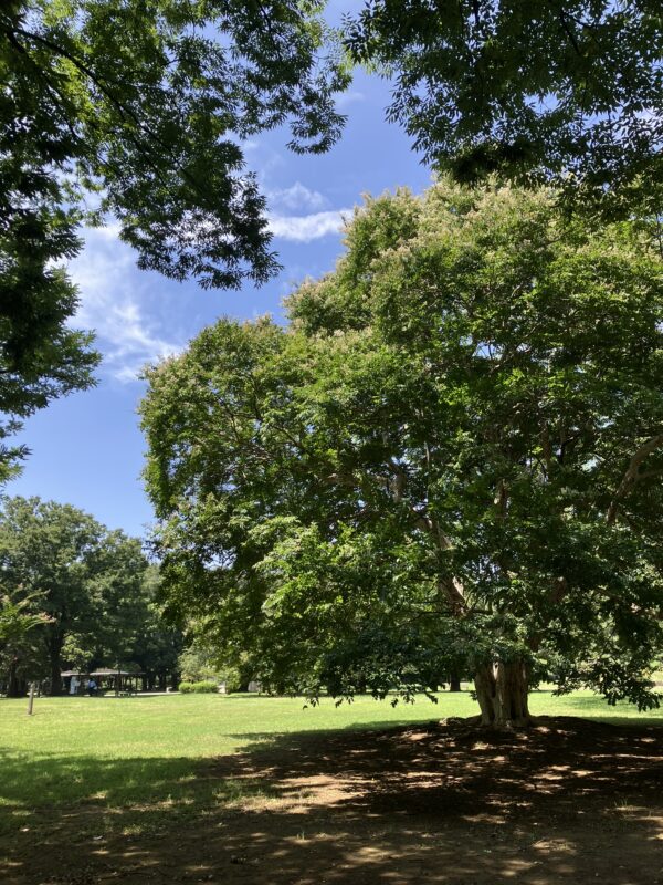 まずは、美術館に向かう途中で出会った元気なひまわりと、砧公園の木々達の写真です。